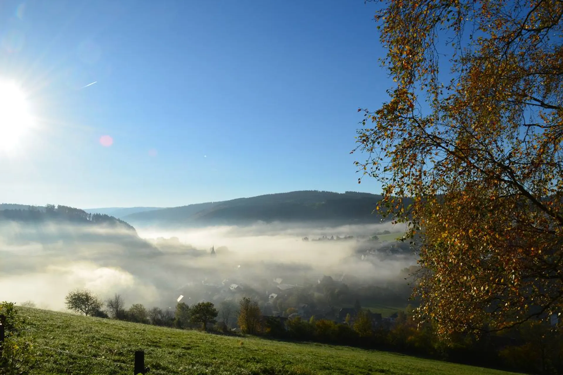 Nach einer Einlaufphase (3,5 km) geht es bergauf über den Zubringer zum Rothaarsteig durch die Lenner Felder zur Böhre. Weiter bergauf über Siebentanne und Heidkopf erreichen wir auf Jagdhaus den Rothaarsteig. Wir bleiben auf dem Rothaarsteig bis Trudes Sonnenbank und laufen über den Grenzweg wieder nach Jagdhaus. Die Straße überquerend kommen wir zurück auf den Rothaarsteig. An der Millionenbank führt die Strecke weiterhin bergauf zum Großen Kopf (742 m, km: 22,9). Vorbei an der Hängebrücke und den Waldskulpturen erreichen wir über die Talvariante den Ort Schanze. Bergab geht es über den Wanderweg L1 zum Ort Latrop. Am Latrop-Bach entlang geht es dem Ziel Sportplatz in Fleckenberg entgegen.
